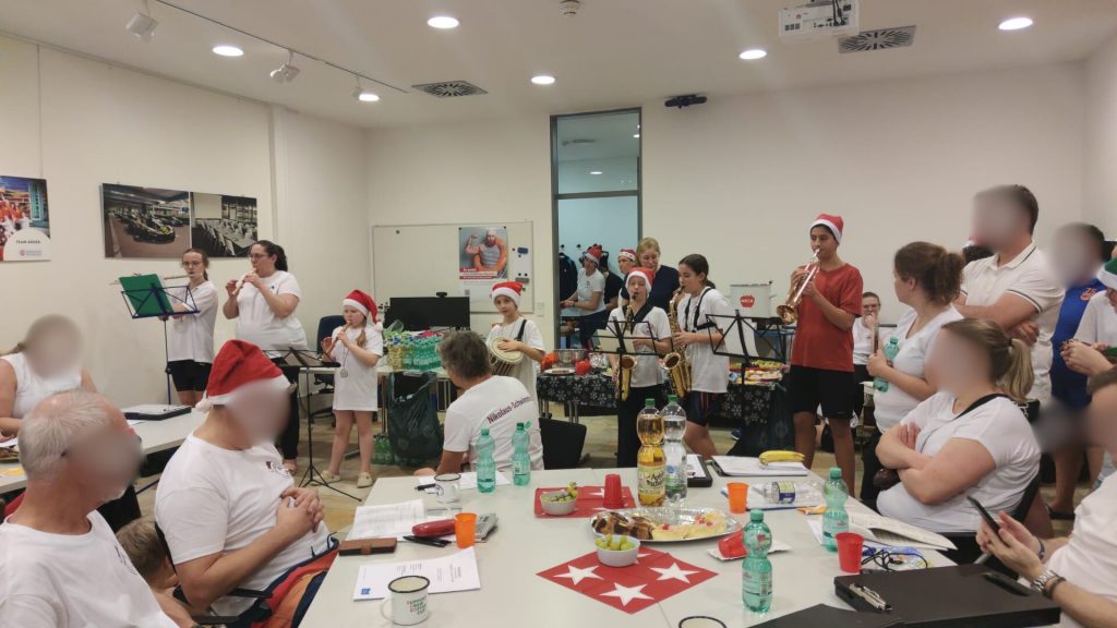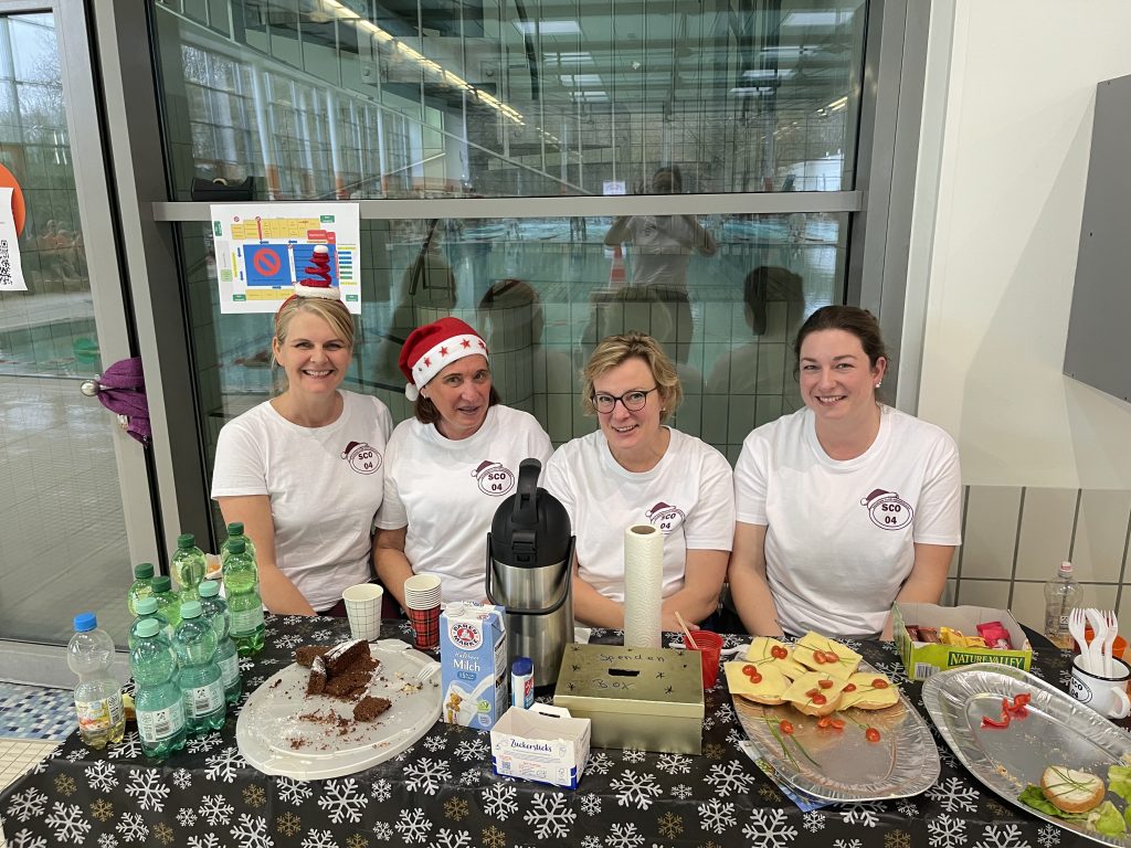 Besondere Highlights waren zweifelsohne die Begrüßung der Karis durch die eigen SCO-Kapelle, die unter der Leitung von Heike ein Weihnachtslied zum Besten gab, sowie der Auftritt unserer Nixen mit Trainerin Angelika.